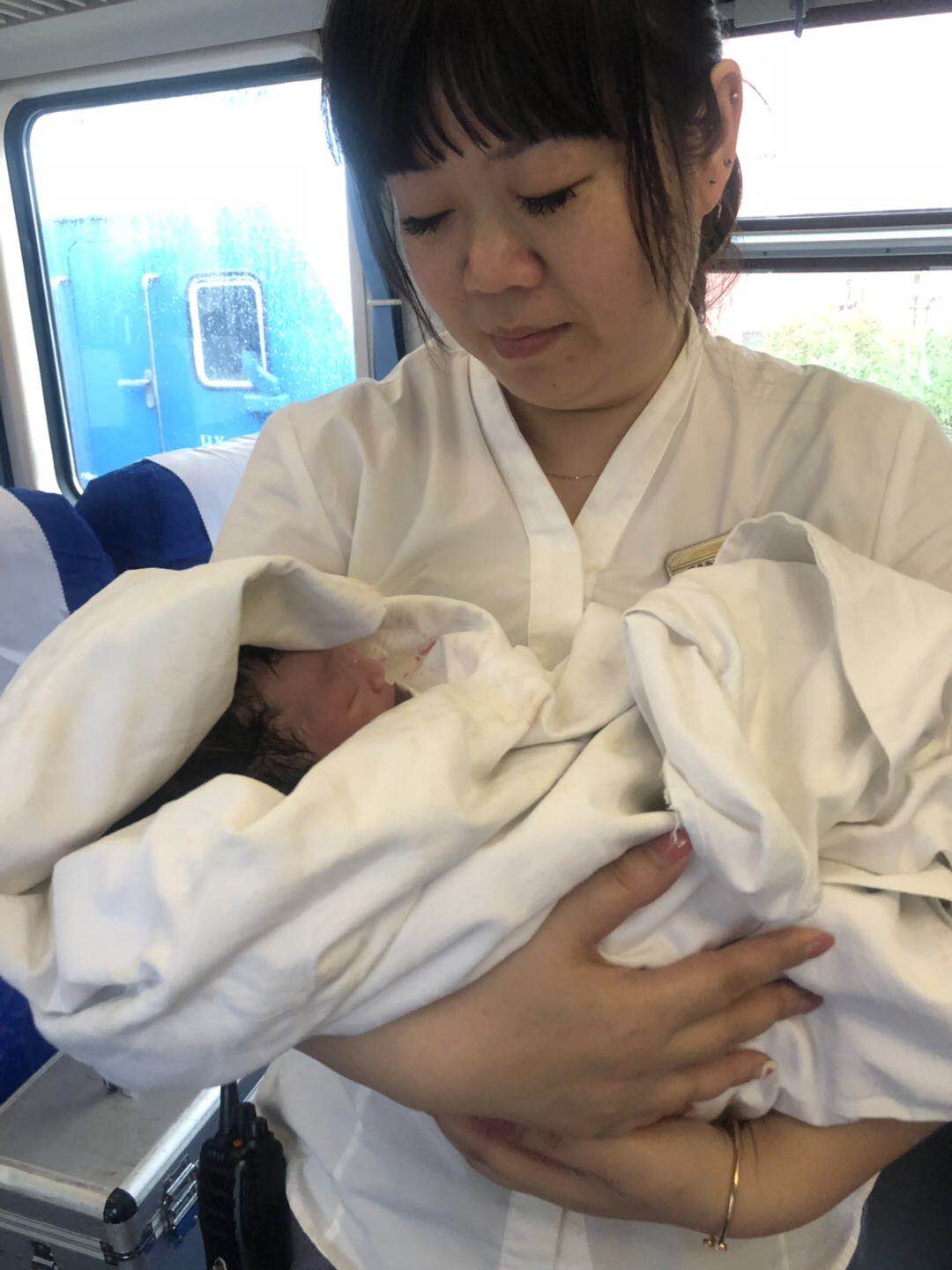 医生检查后说,她宫口已开,婴儿的头都能看见了,孕妇只能在列车上生产。