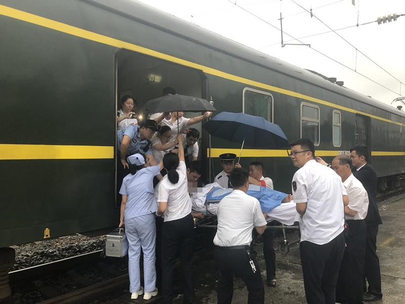 列车长蒋朋立即联系了广铁集团客调,寻求帮助。随即,他接到指令称,让K203次列车紧急停靠在前方湖南新化站,当地的120会及时赶到现场救助。