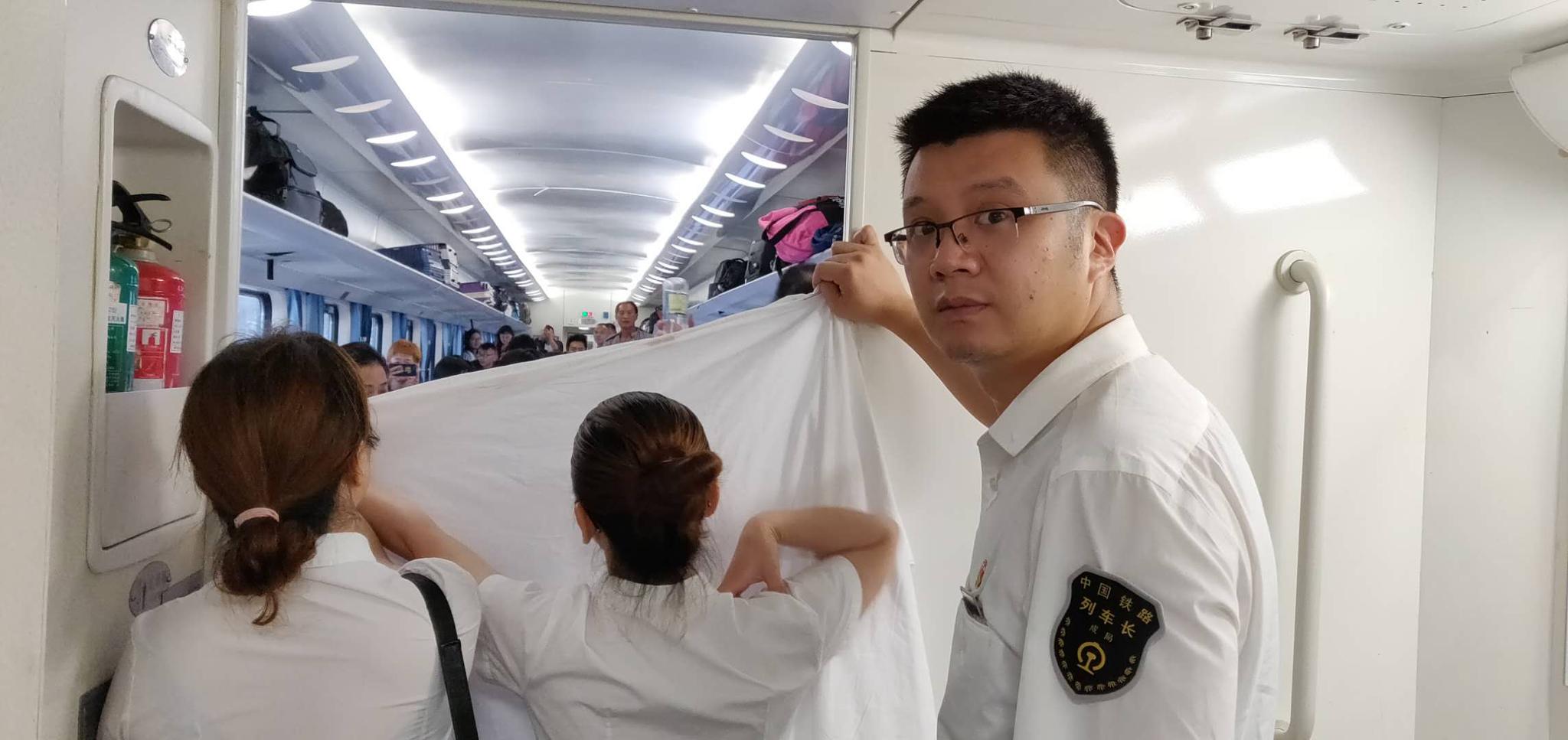 她们还帮着安抚她的情绪,与工作人员一道用卧铺的被单等卧具,围成一个临时的小产房,打消她在大庭广众下生产的顾虑。